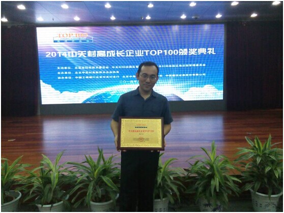 2014年8月8日,在北京市科委、中关村管委会、海淀园管委会及政府主管部门的指导与支持下,由北京中关村高新技术企业协会主办的“2014中关村高成长企业TOP100”评选结果发布会暨颁奖典礼在京隆重举行。北京千亿球友会技术有限公司凭借较快的增长速度、,以及高素质的优秀管理团队,在众多企业中脱颖而出,荣膺上榜。千亿球友会的副总经理管宝全同志代表公司出席了颁奖典礼。