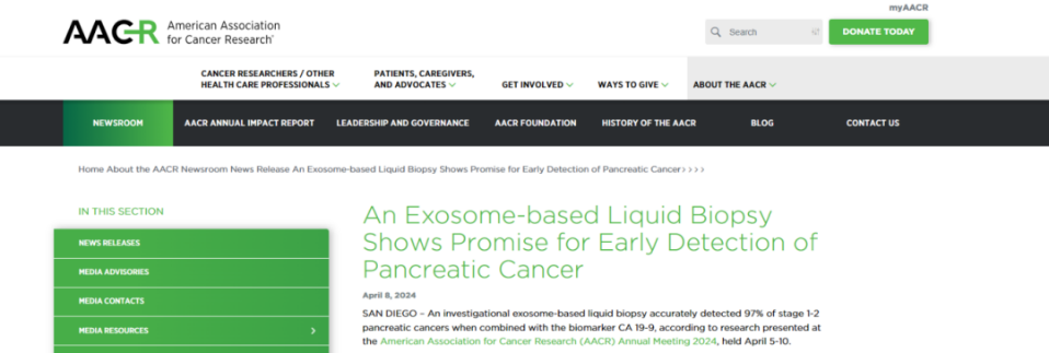 ¸ù¾Ý2024ÃÀ¹ú°©Ö¢Ñо¿Ð»á£¨AACR£©Äê»áÉÏ·¢±íµÄÒ»ÏîÑо¿£¬ÔÚ½áºÏÉúÎï±êÖ¾ÎïCA 19-9µÄÇé¿öÏ£¬»ùÓÚÍâÃÚÌåµÄÒºÌå»î¼ì¿É׼ȷ¼ì²â³ö97%µÄ¢ñ~¢òÆÚÒÈÏÙ°©¡£