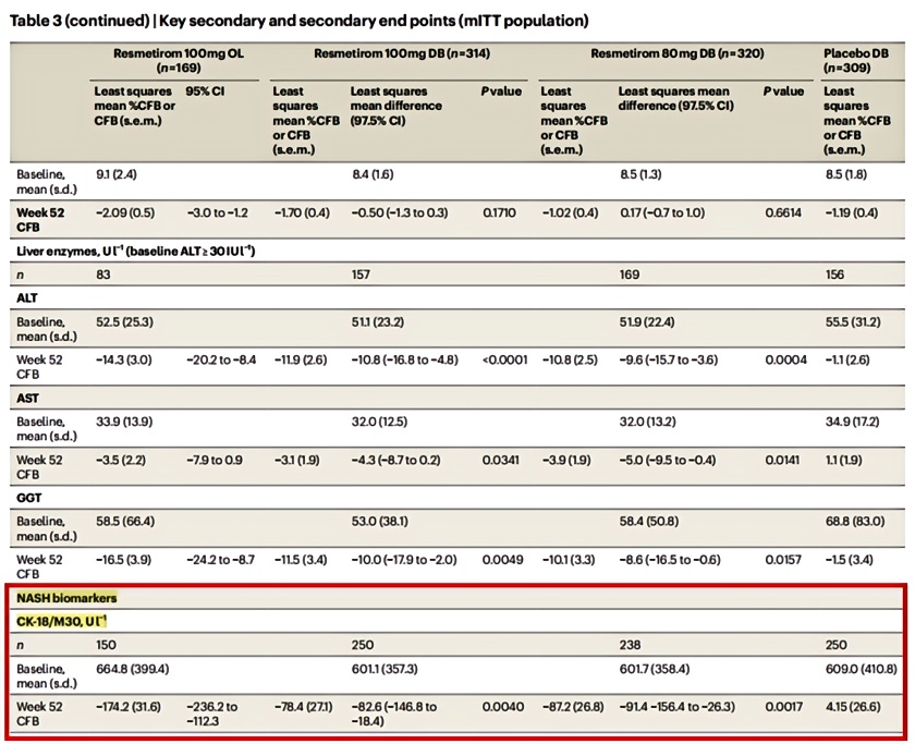 Ñо¿±íÃ÷£¬ÔÚʹÓÃResmetiromÖÎÁƵϼÕßÖУ¬CK18ˮƽ³öÏÖÁËÃ÷ÏÔϽµ¡£CK18×÷Ϊ¸Îϸ°ûËðÉ˵ÄÃô¸Ð±êÖ¾ÎÆäϽµ·´Ó³Á˸ÎÔàÑ×Ö¢ºÍϸ°ûËðÉ˵ļõÇᣬÕâÒ»±ä»¯ÎªÒ½ÉúÌṩÁËÓÐÁ¦µÄÖ¤¾Ý£¬±íÃ÷ResmetiromÔÚ¸ÄÉÆMASH»¼Õ߸ÎÔà×´¿ö·½Ãæ¾ßÓÐÁ¼ºÃµÄÖÎÁÆÐ§¹û¡£´ËÍ⣬CK18µÄϽµÒ²ÓÐÖúÓÚʵʱ¼à²âÒ©ÎïÖÎÁƵĶ¯Ì¬±ä»¯£¬Ê¹µÃÒ½ÉúÄܹ»¾«×¼ÆÀ¹À»¼Õß¶ÔResmetiromµÄ·´Ó¦£¬¼°Ê±µ÷ÕûÖÎÁÆ·½°¸¡£