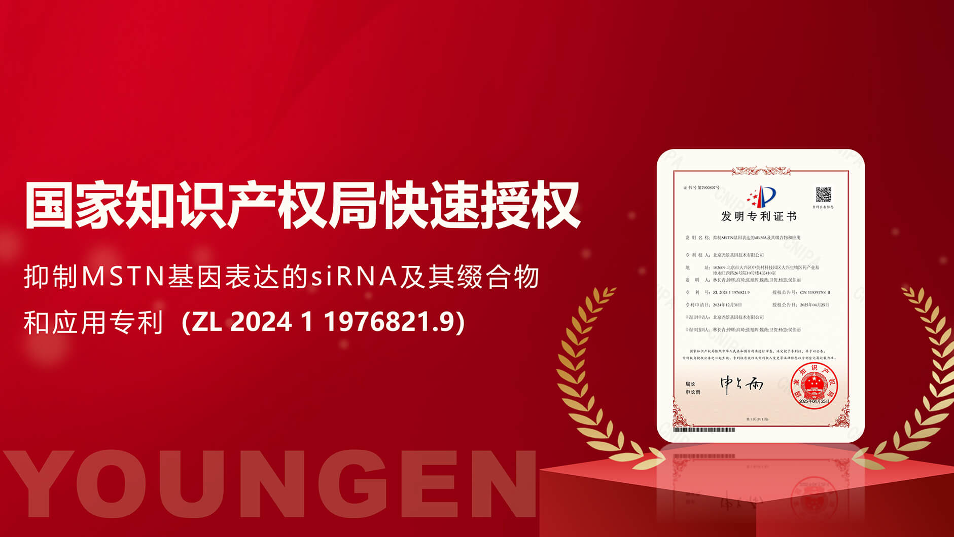 ½üÈÕ£¬Ç§ÒÚÇòÓÑ»á²Î¹É¹«Ë¾±±¾©Ò¢¾°»ùÒò¼¼ÊõÓÐÏÞ¹«Ë¾£¬±»¹ú¼Ò֪ʶ²úȨ¾Ö¿ìËÙÊÚȨÁËÃûΪ¡°ÒÖÖÆMSTN»ùÒò±í´ïµÄsiRNA¼°Æä׺ºÏÎïºÍÓ¦Óá±×¨Àû£¨ZL202411976821.9£©¡£¸ÃרÀûÌṩһÖÖÄܹ»ÒÖÖÆMST...